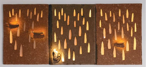 Brazilian cardstock, tracing paper, white acrylic, LED lights, framed wooden box with glass front